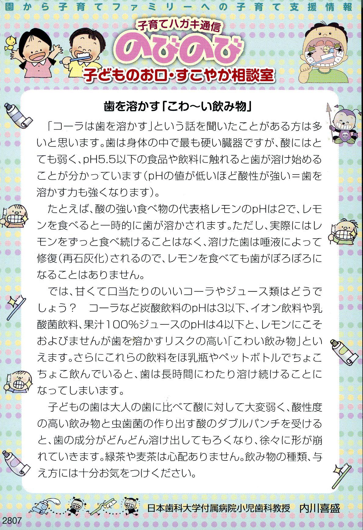子どものお口すこやか相談室 歯を溶かす「こわ~い飲み物」